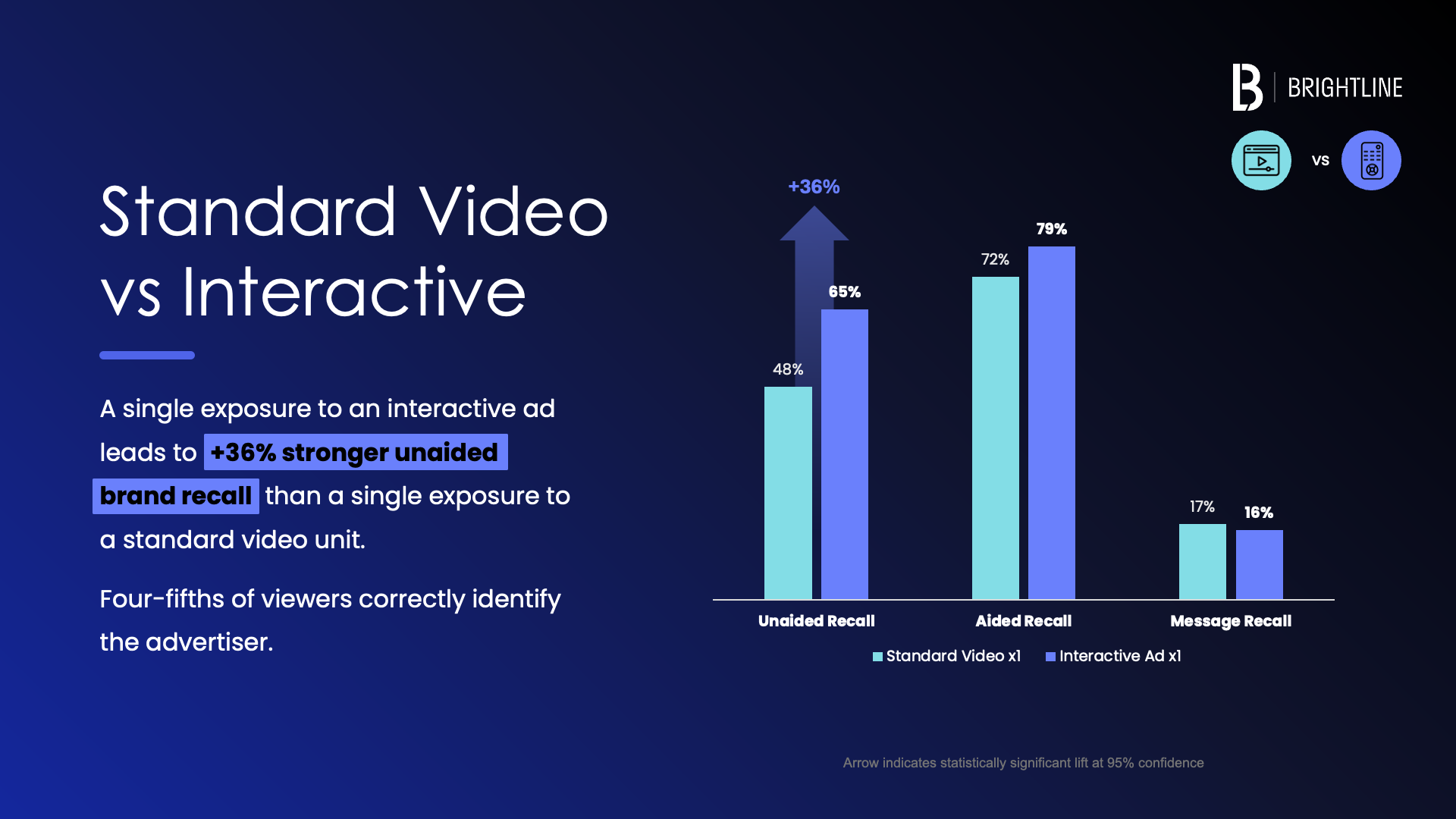 Interactive formats are already proving their value. With our partners at MediaScience, we found that even just one exposure to an interactive ad drives 36% higher unaided brand awareness compared to one exposure to a standard video.